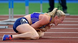 Sally Pearson fall during the 100m hurdles in Rome during the 2015 Diamond League